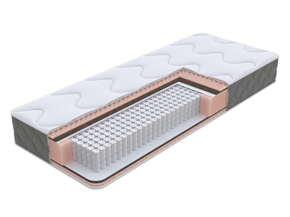 Матрас на основе современных наполнителей би-кокоса и пенного материала Ортофом с микромассажным эффектом, которые повышают износостойкость матраса, а также придают его поверхности оптимальную среднюю жесткость. За поддержку отвечает блок с увеличенным количеством независимых пружин, который подстраивается под каждый участок тела обеспечивая высокое качество поддержки.