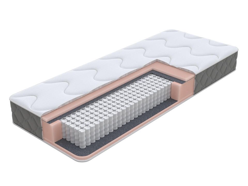 Матрас универсальной средней жесткости. В комфортных слоях используется современный пенный материал Ортофом повышенной жесткости, который обладает хорошей упругостью и быстро восстанавливает первоначальную форму после нагрузки. Благодаря этому поверхность остается комфортной на протяжении длительного срока. Поддержку тела в физиологически правильном положении обеспечивает блок с 1000 независимых пружин. Современный чехол из белоснежного трикотажа в сочетании с мебельным бурлетом серого цвета создает дополнительный комфорт и придает матрасу прекрасный внешний вид.